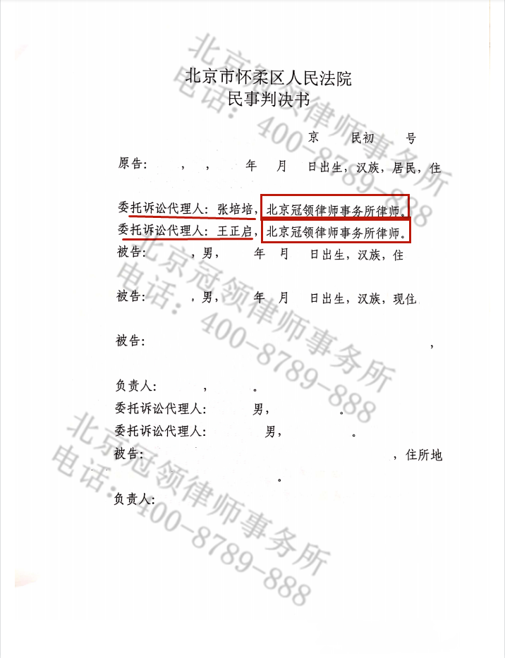 6月25日,冠领律师张培培、王正启代理的北京机动车交通事故责任纠纷案胜诉。